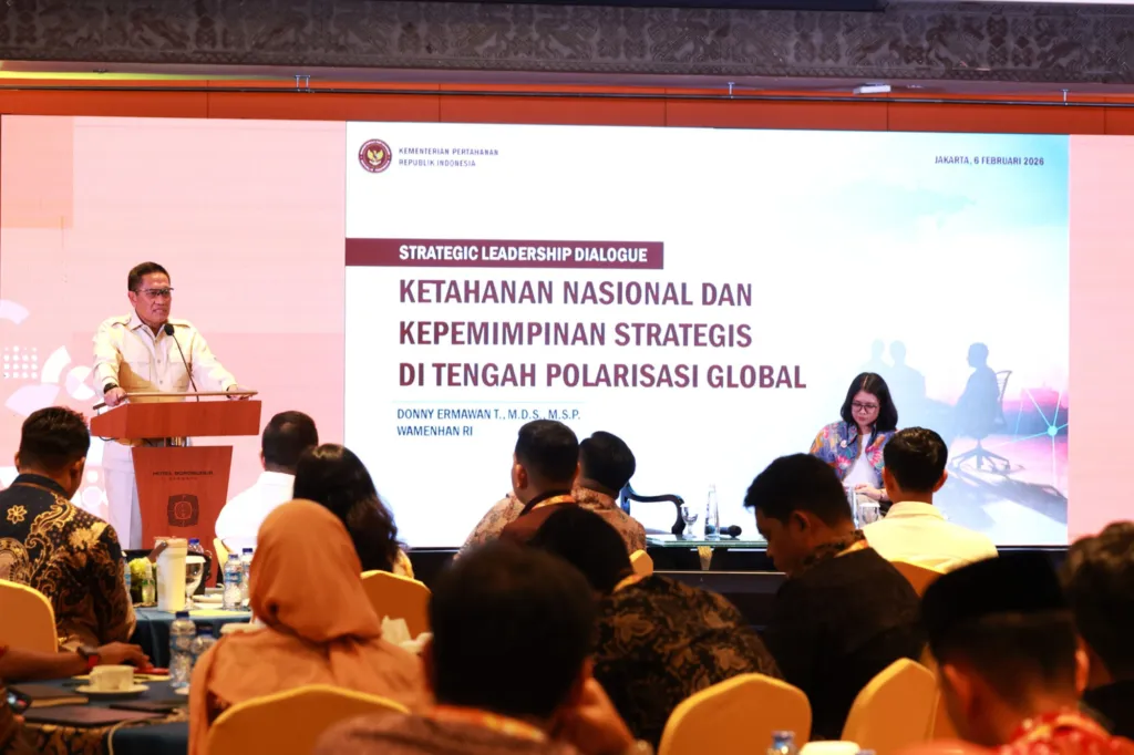 TRIASINDONESIA.COM – Jakarta – Wakil Menteri Pertahanan Republik Indonesia (Wamenhan RI) Donny Ermawan Taufanto memberikan materi pada kegiatan Mata Garuda Lembaga Pengelola Dana Pendidikan (LPDP) Leadership Forum yang diselenggarakan di Hotel Borobudur, Jakarta, Jumat (6/2/2026).