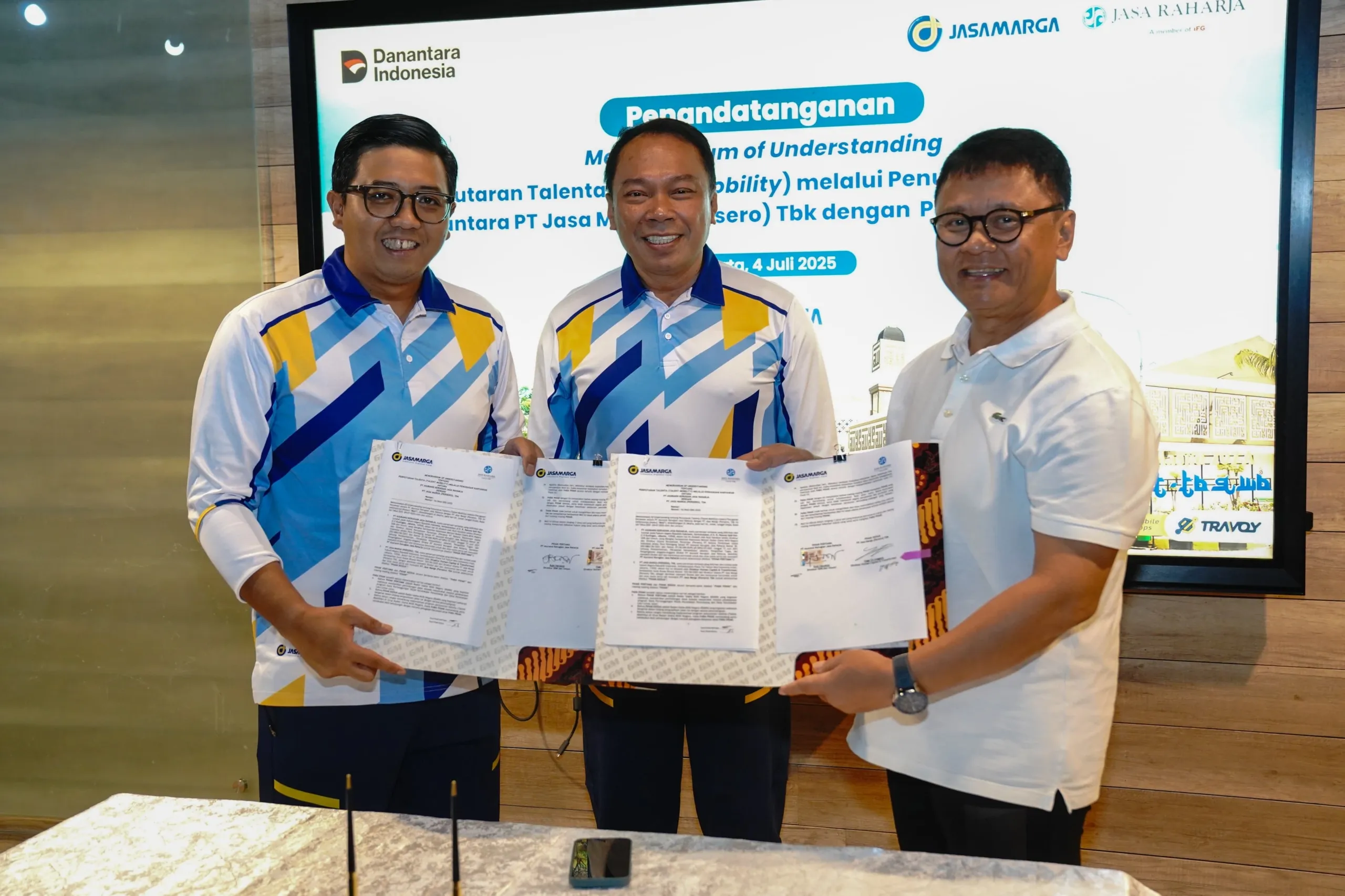 TRIASINDONESIA.COM – PT Jasa Marga (Persero) Tbk. dan PT Jasa Raharja menegaskan komitmen sinergi antar Badan Usaha Milik Negara (BUMN) melalui penandatanganan Nota Kesepahaman (MoU) Program Talent Mobility. Acara yang berlangsung di Kantor Pusat Jasa Marga ini menandai tonggak awal inisiatif strategis untuk mempercepat pengembangan sumber daya manusia unggulan. Dengan membuka akses lintas perusahaan, kolaborasi ini memungkinkan talenta terbaik kedua perusahaan menggali keahlian baru, memperkaya wawasan bisnis, dan memperkuat kemampuan memimpin dalam menghadapi tantangan era disruptif.