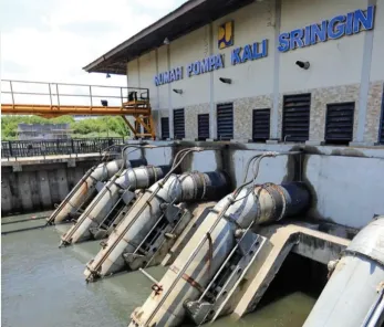 Masing-masing pompa memiliki kapasitas 2.000 liter per detik dan dijalankan secara non-stop untuk mengendalikan potensi genangan air dari wilayah hulu. Sementara itu, Rumah Pompa Sringin mengoperasikan lima unit pompa dengan total debit 10.000 liter per detik, dengan kapasitas yang sama per unit.